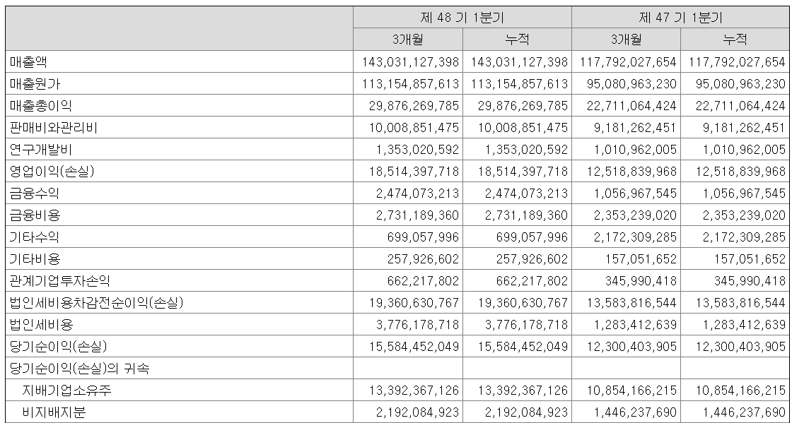 - 의미있는 수준의 실적 성장 달성. 건기식 부문 성장, 신설 오송 건기식 공장의 안정화(수익성), 베트남 캡슐 공장 증설 등 성장 동력 확보. 국내 1위 업체 지위 유지